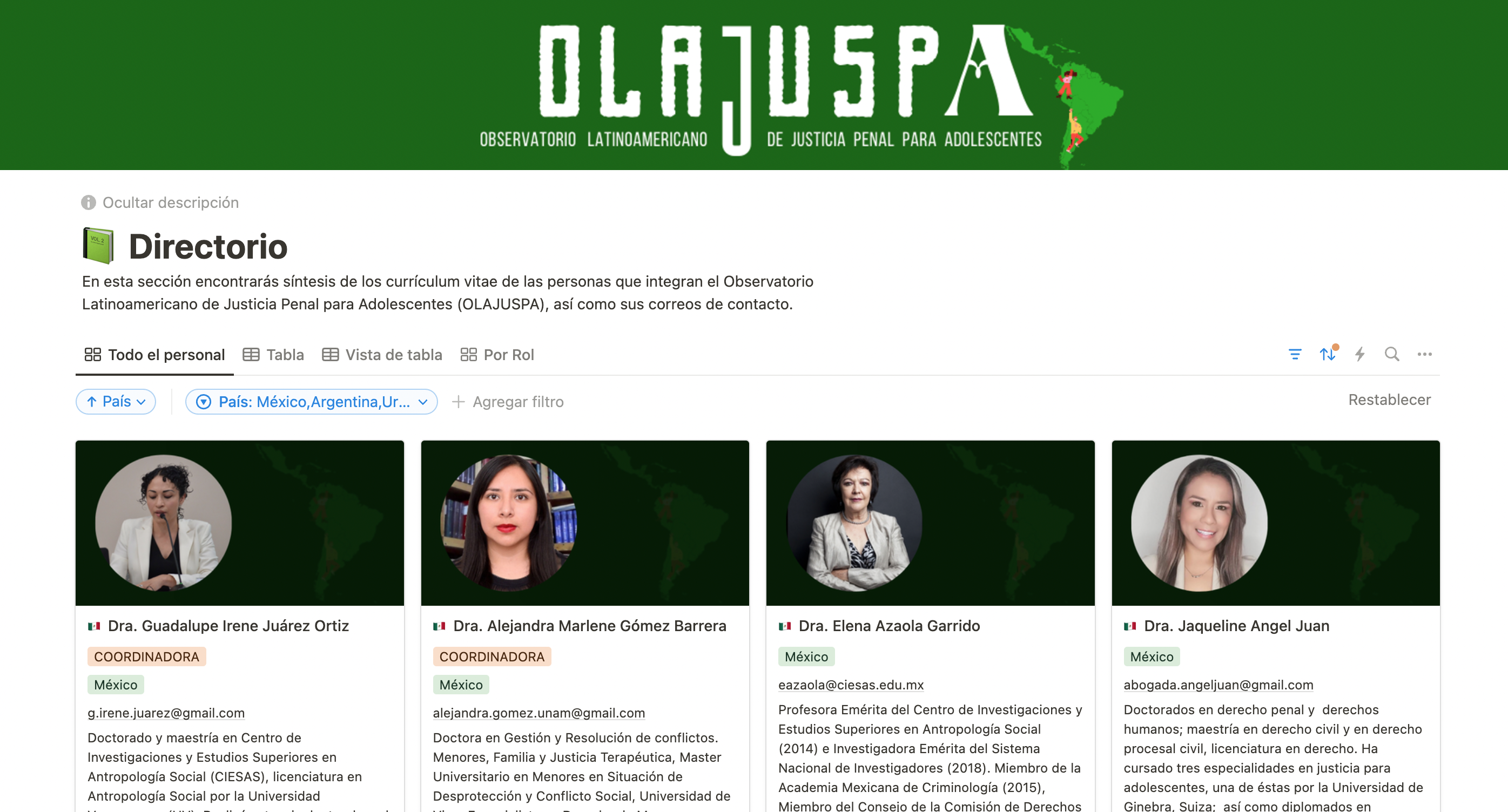 En esta sección encontrarás las semblanzas curriculares de las personas que integran el Observatorio Latinoamericano de Justicia Penal para Adolescentes (OLAJUSPA), así como sus correos de contacto.
